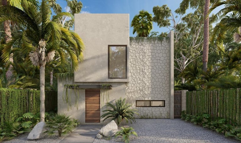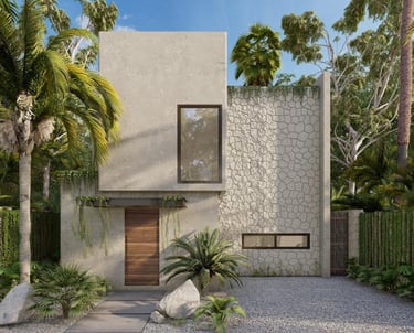 Villas de lujo diseñadas con materiales de la región para maximizar la rentabilidad por rentas vacacionales y de largo plazo dentro del exclusvo complejo residencial Nueva Vista Tulum.
